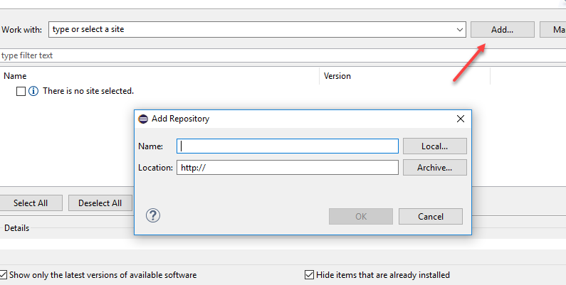 3. On the Available Software window, click the Add to display the Add Repository popup.