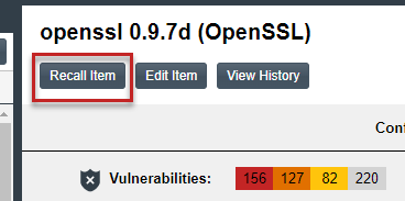 1. Open the Project Inventory tab for the desired project, and select the inventory item that you want to recall (see Displaying Project Inventory). Information about the inventory item is displayed in the right pane.